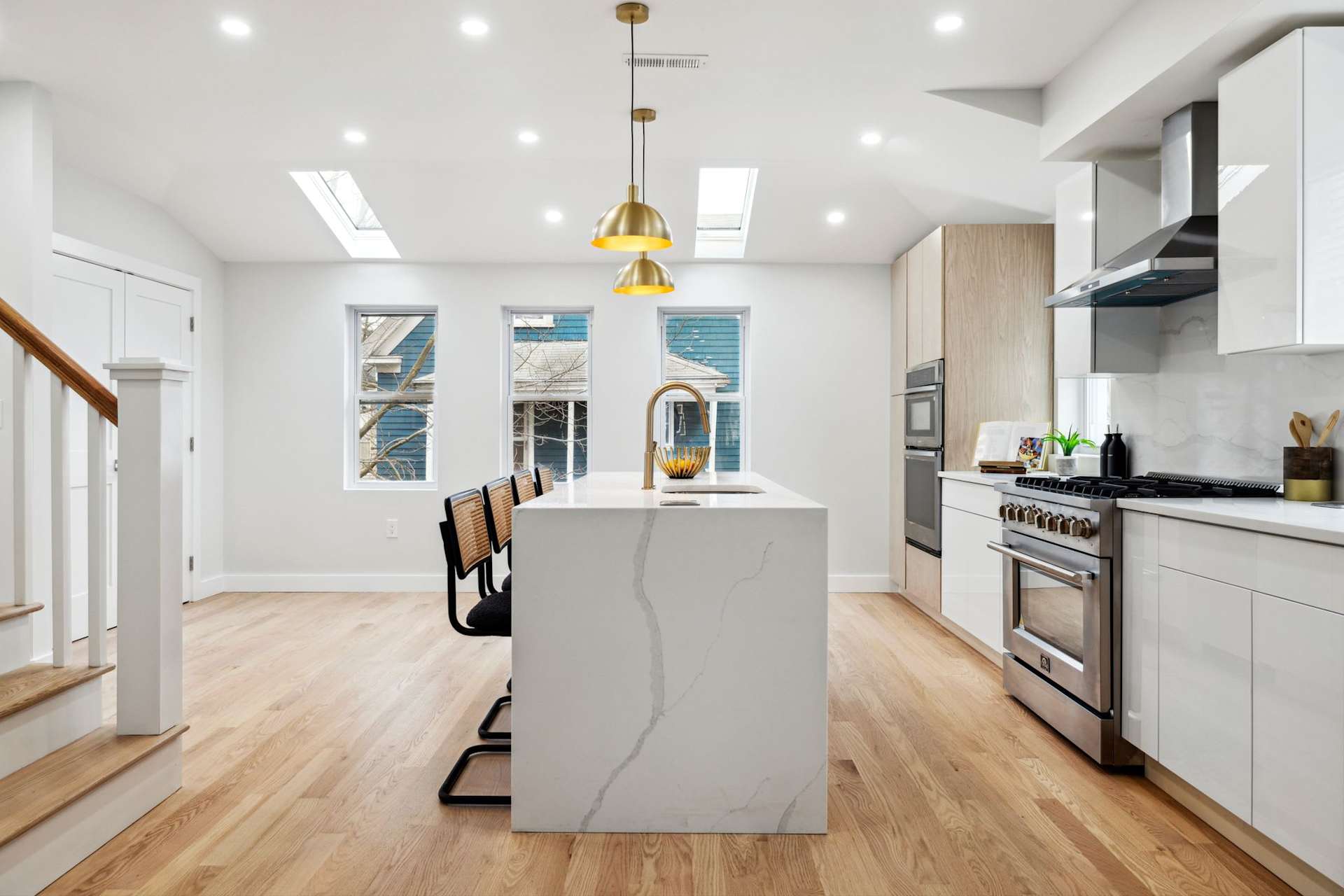 Luxury defines this newly renovated 4-bedroom, 3-bathroom home in prime Ball Square location. Spanning two levels of sun-filled, expansive living space, this elegant residence offers a host of upscale features and amenities. Walk through your own private entrance featuring mudroom space with custom built-ins. Head upstairs to an expansive living and dining room that share a double-sided gas fireplace. The generously sized kitchen includes an 8 foot island with a waterfall edge, a 36” gas stove with hood, double oven with convection microwave, pantry, and hidden outlets with USB charging throughout. Two bedrooms and a full bath with ceramic tile and custom glass doors, and laundry hook-ups, complete this level. Ascending to the second level, you're greeted by a window-blanketed sitting room, a third bedroom, and a second full bath with ceramic tile and custom glass doors. The vaulted ceiling primary suite offers skylights, custom closets, a walk-in closet, laundry hook-ups, and a four-piece bath. The ceramic tile shower features six body sprays, a rain shower-head, and a hand sprayer. Additionally, you can enjoy the soaking tub and double vanity. This home features natural oak flooring, high ceilings, custom shelving in all closets, recessed lighting throughout, and private front and rear entrances. Step outside to your fenced private patio with pavers and landscaping, along with a private storage shed for bikes and gardening equipment. The property also includes two tandem parking spaces. Conveniently located steps from Ball Square, the new green line T, Somerville community path to Davis Square and the red line T. Enjoy the convenience to shops, restaurants, and everything this property has to offer.