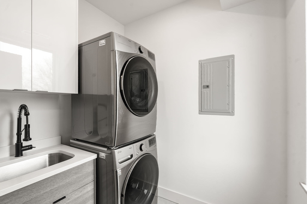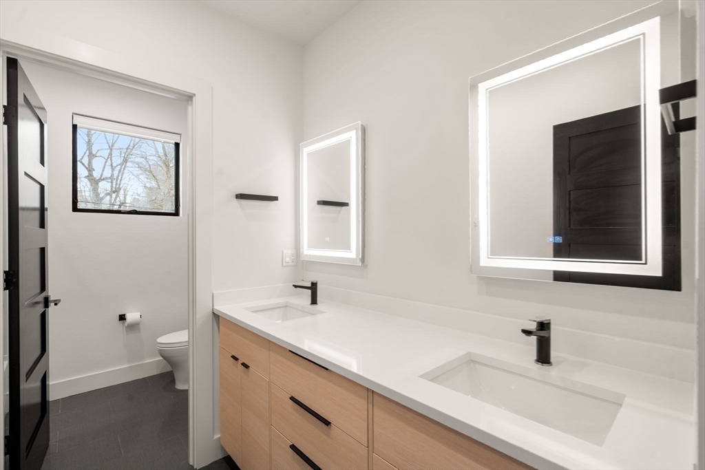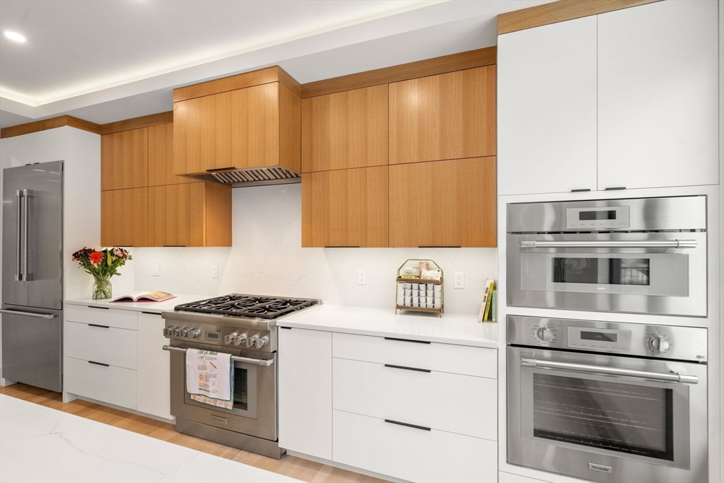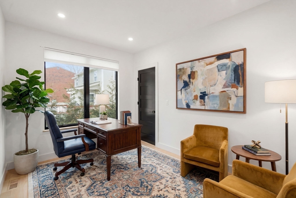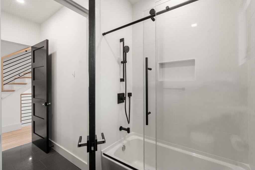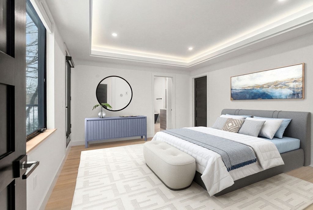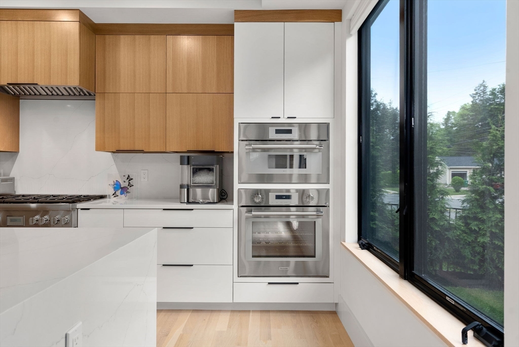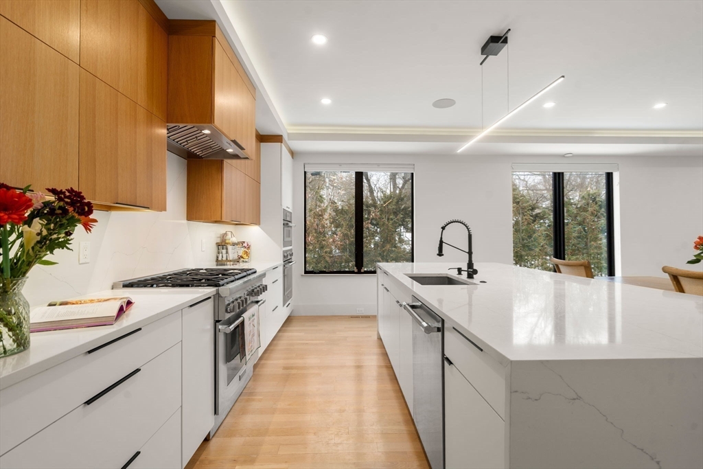 Set in the sought-after neighborhood of Waban and adjacent to Cold Spring Park, this sophisticated 2022-built, energy-efficient home lives like a SF and offers a refined, modern lifestyle. Thoughtfully designed, the home features 4 spacious bedrooms, home office & three and a half beautifully appointed baths. The main level welcomes you w/ a bright, open floor plan highlighted by high ceilings & sun-filled living spaces ideal for both everyday living & entertaining. The chef's kitchen is outfitted w/ Thermador appliances & flows seamlessly into an inviting family room w/ a cozy gas fireplace & a stylish dining area. Upstairs, the serene primary suite offers a private balcony, spa-inspired bath, & generous walk-in closet. Two additional bedrooms provide comfortable accommodations for family or guests. The top level offers flexible space for a playroom, office, or lounge. The finished lower level includes a family room with wet bar, home gym, guest bedroom, & full bath.