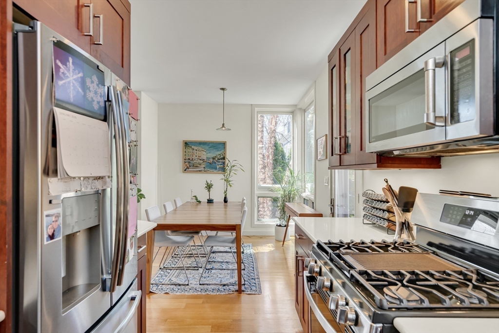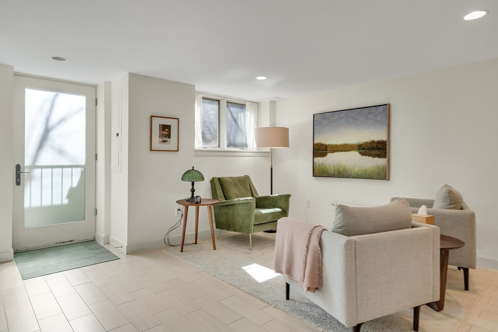 Welcome home to this sun drenched, 2012 built townhouse in the heart of Cambridge. The 1,828 square ft 3 bd/3.5 ba home w/artist loft & roof deck features stylish open floor plan w/direct access to garage and large, fenced private patio. Gracious floor-to-ceiling, oversized windows throughout bring the sunlight and the pretty views from the outdoors in. The fireplaced living and dining areas open to the patio off the kitchen; which includes stainless steel appliances, breakfast bar, and premium counters. There is also a half bath on this floor. The second level includes two bedrooms, one en-suite with a walk-in closet, plus a full hall bath. The top level offers a sunlit loft with roof deck access. Lower level features private bath & private entrance; offering a flexible space for work, play or guest room. You can have it all - stylish home, private yard, in-unit laundry, AC, efficient heating all w/in steps to Central Sq Red Line T (.2miles) Harvard Sq T (1.2mi)